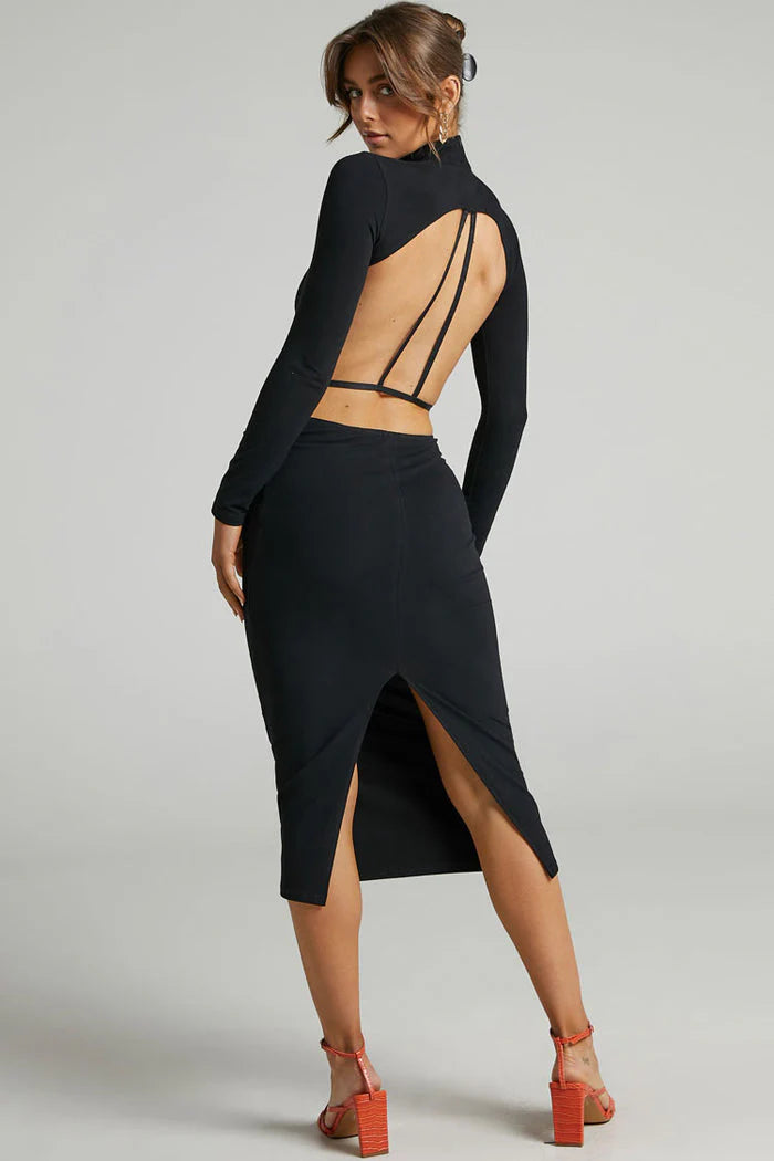 Garnet, a color of passion and power, is your ultimate ally when you want to stand out. And when paired with a sleek, curve-hugging fit and high-glam design details, the result is nothing short of iconic. Whether it’s a glamorous cocktail party, a romantic evening, or a night on the dance floor, this dress turns the moment into a memory.